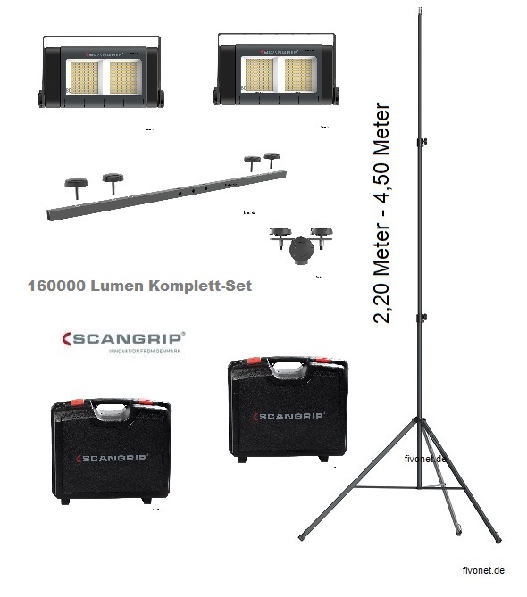 2x Scangrip 03.5269 SITE LIGHT 80 Baustrahler im Koffer Stativ 4,5m