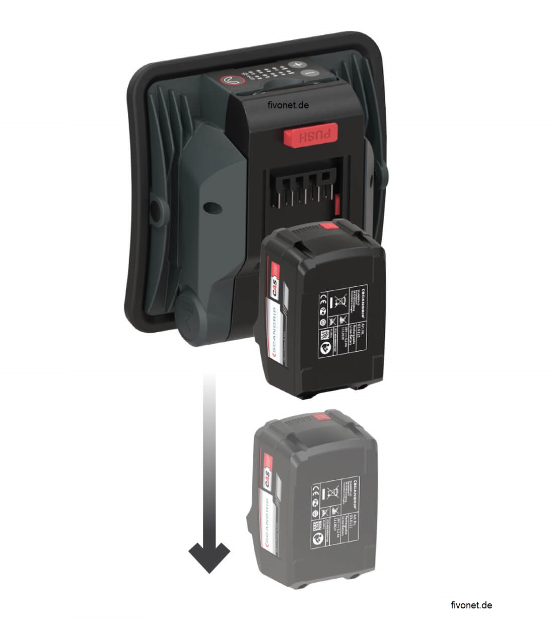 - Betriebsdauer mit max Lumen (CAS/Stunden) 5,75 Std. mit 18V 5,2Ah Akku