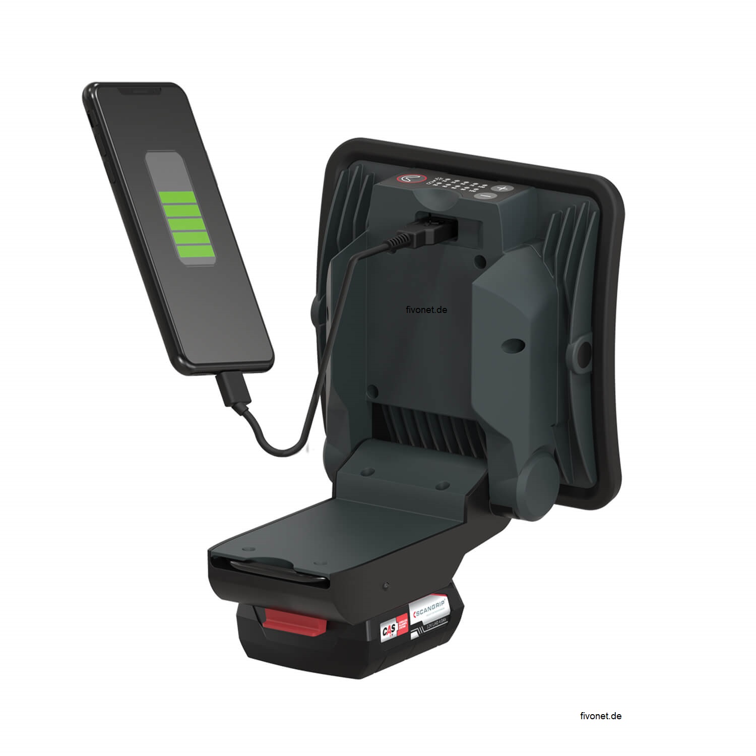 NOVA 2 CAS ist eine leistungsstarke, kompakte, Universalarbeitsleuchte für den professionellen Anwender. Die Arbeitsleuchte mit der neuesten COB-LED-Hochleistungstechnologie bietet bis zu 2000 Lumen. Mit der eingebauten Dimmfunktion kann man je nach Arbeitsaufgabe zwischen fünf verschiedenen Lichtstufen wählen. Die Arbeitsleuchte ist mit einer Anzeige für Akkustand und Lichtleistung ausgestattet. NOVA 2 CAS ist sowohl mit METABO/CAS 12-Volt-Akkus als auch METABO/CAS 18-Volt-Akkus kompatibel und kann außerdem direkt an das SCANGRIP Netzteil / Stromversorgung (nicht im Angebot enthalten) für unbegrenzte Lichtverfügbarkeit angeschlossen werden. Mit der flexiblen Stütze und dem eingebauten Haken lässt sich die NOVA 2 CAS für den optimalen Beleuchtungswinkel einfach drehen. Als Extrafunktion verfügt sie über eine eingebaute Powerbank mit USB-Buchse zum Aufladen von mobilen Einheiten. Das Gehäuse aus Alu-Spritzguss ist extrem robust und widerstandsfähig gegenüber starken Stößen, Schlägen und Vibrationen. Die robuste Konstruktion der NOVA 2 CAS ist für anspruchsvolle, raue Arbeitsumgebungen perfekt geeignet.