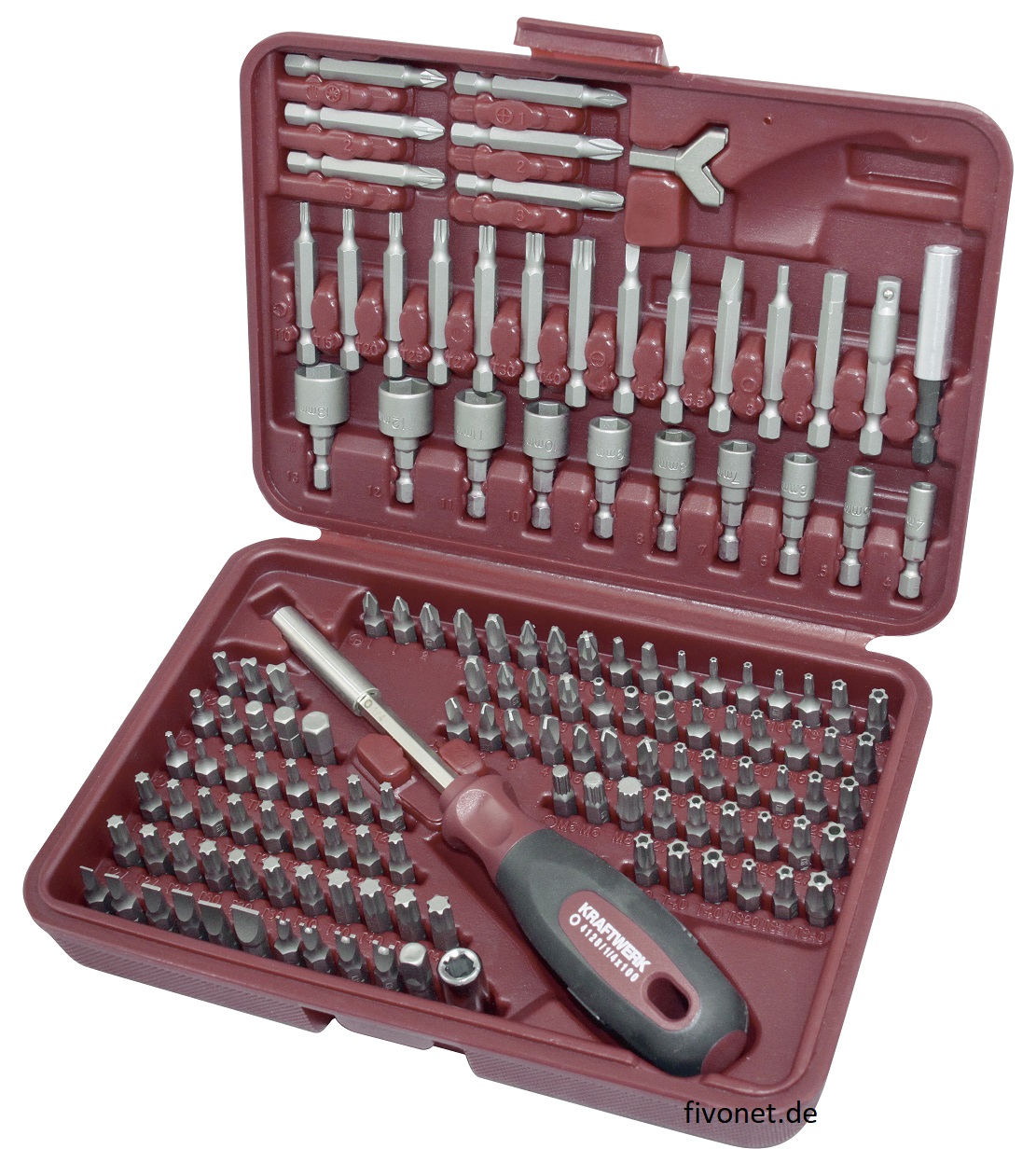 138 tlg. Kraftwerk Bitkasten 1/4" mit sämtlichen gängigen, speziellen sowie Sicherheits - Bits und dem perfekten Bitschraubendreher mit 2-Komponentengriff. Super praktisches Set für Profis und natürlich auch private Anwender mit hohem Qualitätsanspruch.