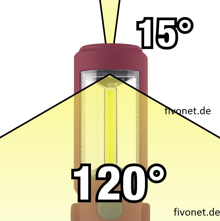 Leuchtdauer: Hauptlicht 2 Stunden, Spotlicht 15 Stunden