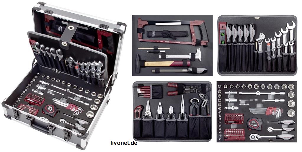 Der Koffer kann 158 Teile aufnehmen, das Foto ist ein Beispielbild zur Anwendung, in diesem Angebot ist kein Werkzeug enthalten.