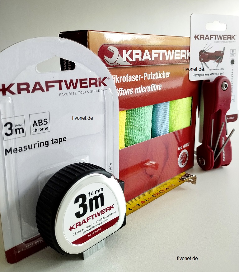 KRAFTWERK fivonet-Set Rollmeter Maßband Innensechskant Mikrofaser Geschenkidee