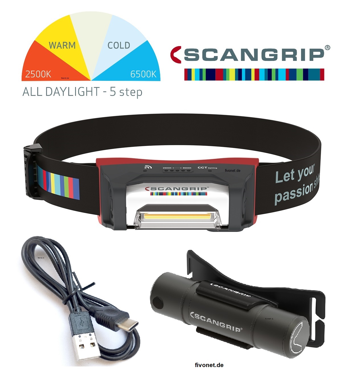 Scangrip 03.5663 I-Match 4 Detailing Kopflampe mit Powerbank für Fahrzeugaufbereitung und Restauration