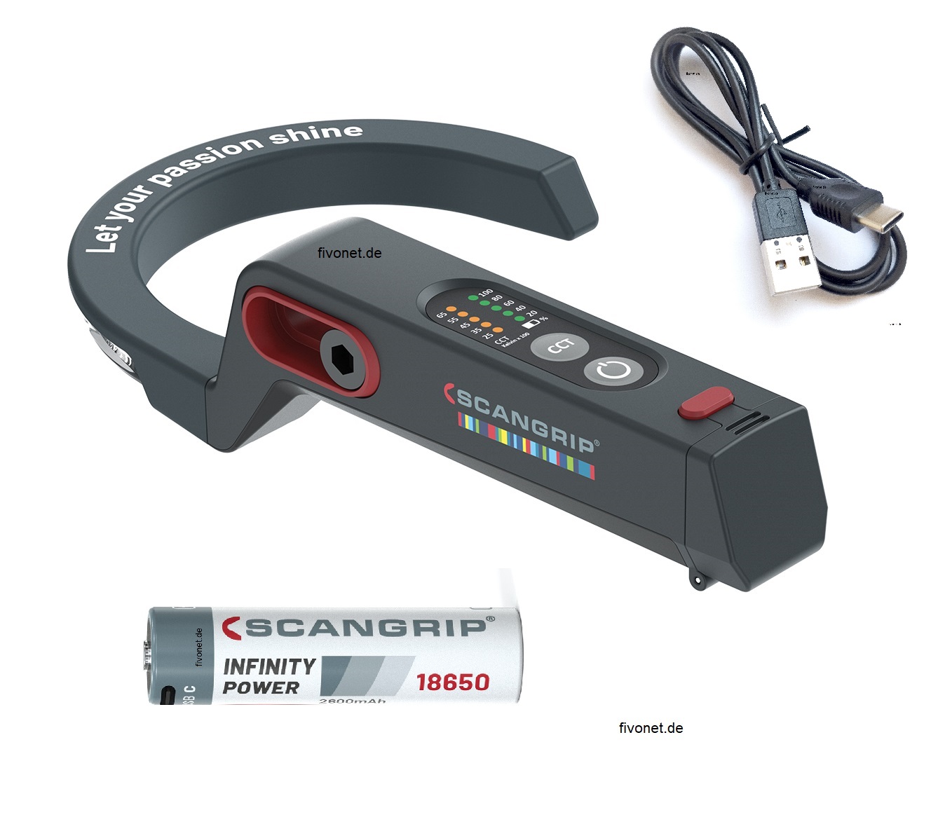 Die Arbeitsleuchte wird mit einem wiederaufladbaren USB-C-Akku geliefert und bietet eine intelligente und effiziente Ladelösung. Entnehmen Sie einfach den leeren Akku, laden Sie ihn über USB-C auf und arbeiten Sie nahtlos mit einem neuen, vollständig geladenen Akku ( in unserem Shop bestellbar USB-C Akku 18650 ) weiter. Natürlich haben wir auch ein fivonet-Set mit 2 Akkus zum Vorteilspreis im Angebot: Scangrip Starmatch mit 2 Akkus