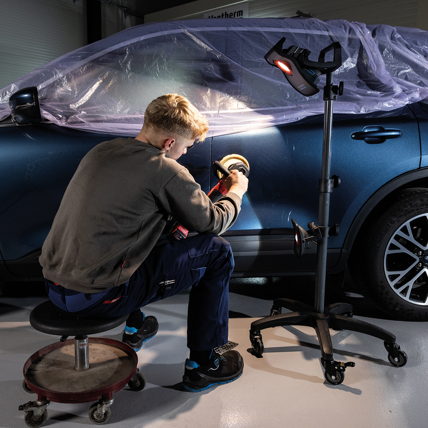 - Leistungsfähige LED-Arbeitsleuchte für Kfz-Aufbereitung und Farbanpassung mit einem Lichtstrom von 1.200 Lumen