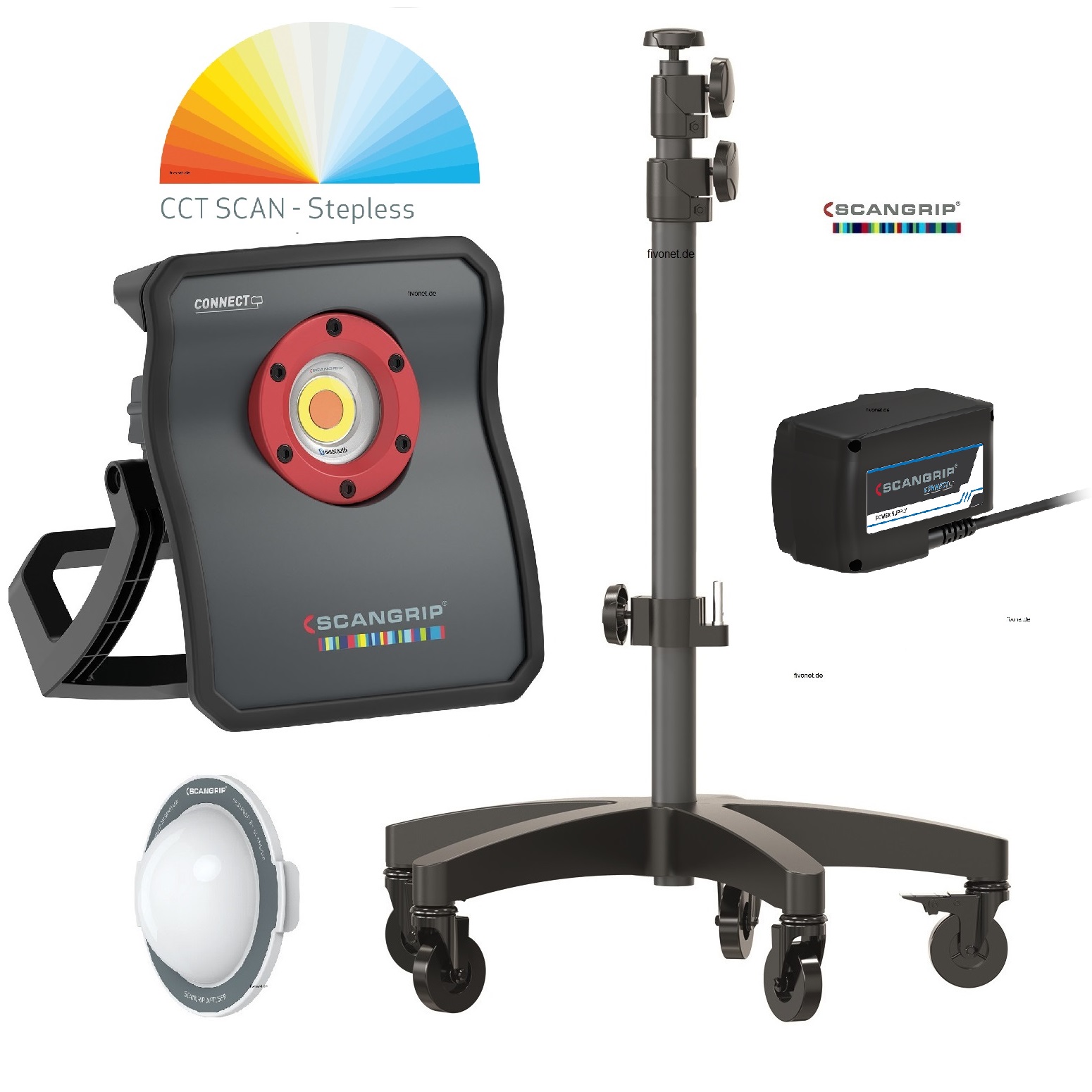 Alles in Allem - ein Muß für die Hochleistungsleuchten von Scangrip zur optimalen Anwendung. Ein Einsatz in Aufbereitungsbetrieben, Ateliers, Werkstätten auf Baustellen zu Veranstaltungen, Messen, Ausstellungen, Präsentationen, überall dort wo individuelle Beleuchtung benötigt wird, dieses Stativ ist ein optimales Zubehör.fivonet.deText