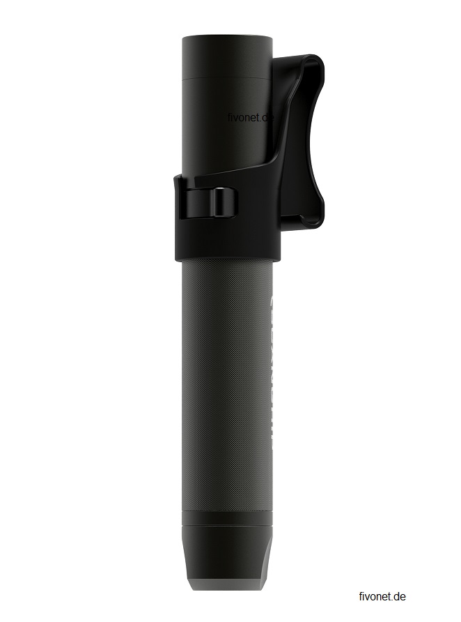 FLASH 600 wird mit einem praktischen Cliphalter für den Gürtel geliefert. Das Gehäuse ist aus eloxiertem Aluminium für hohe Haltbarkeit und bietet einen ergonomischen und sicheren Griff. Wasserdicht, IP54.