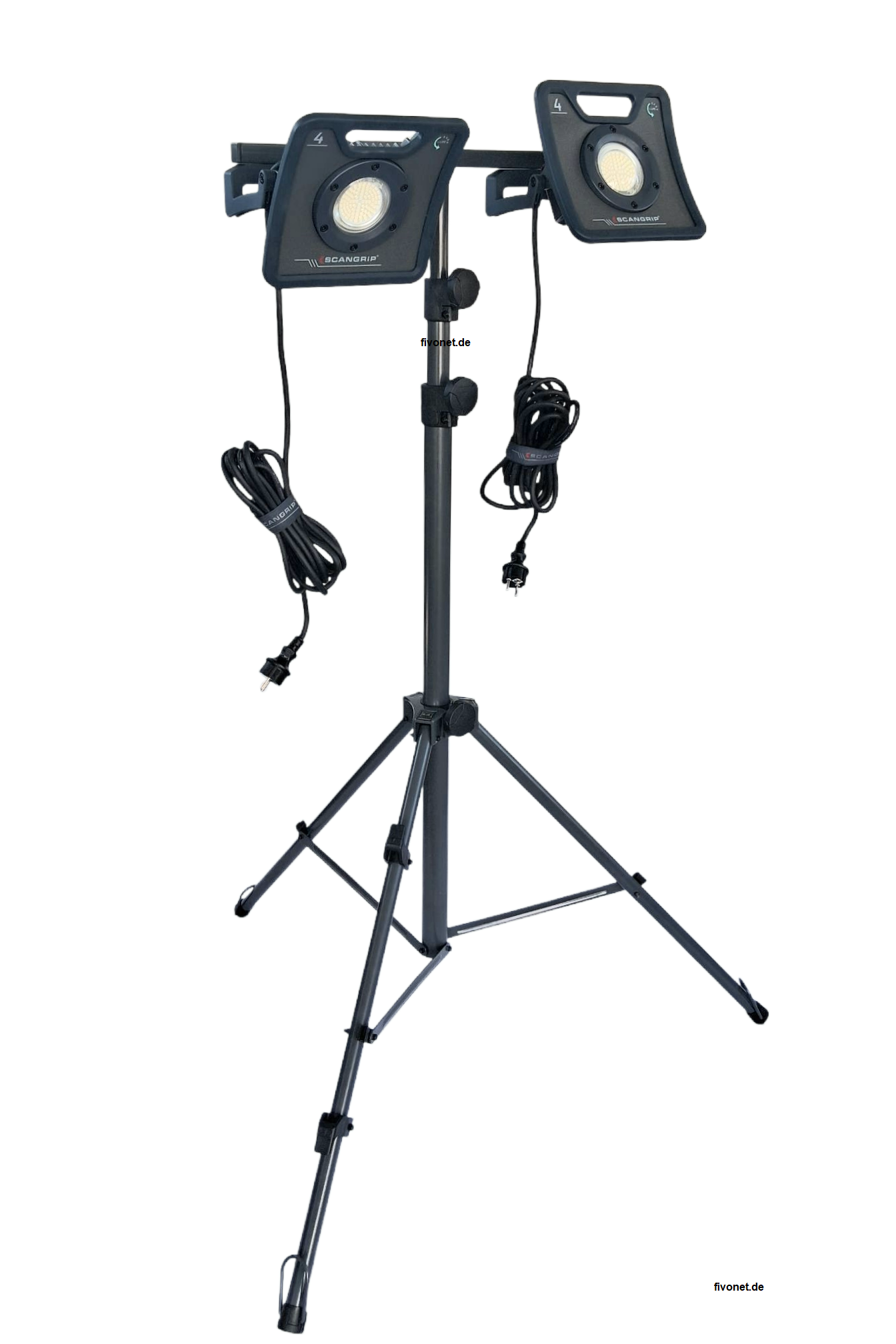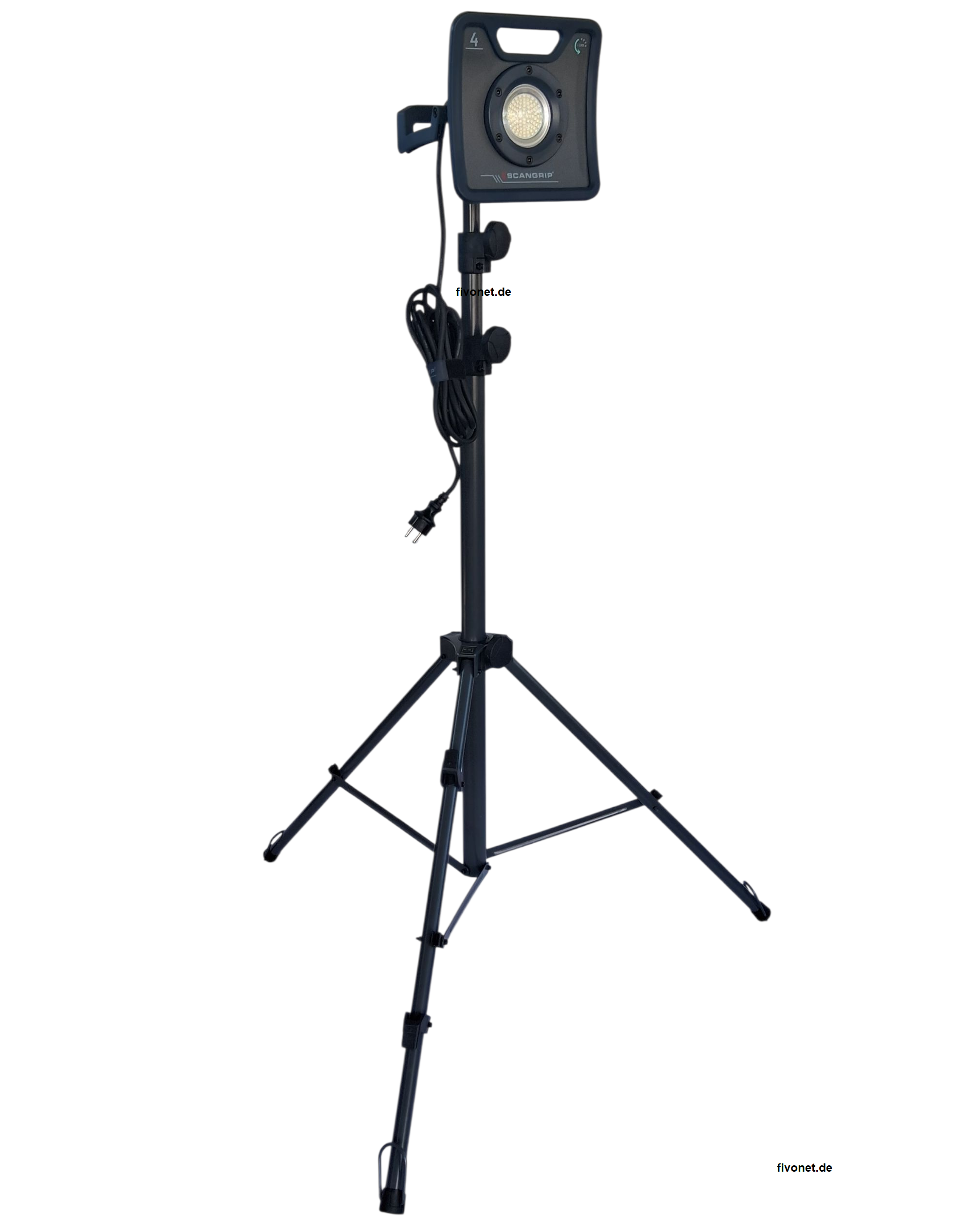 Mit dem SCANGRIP Stativ sind Sie für jede Arbeitsaufgabe, bei der flexible Beleuchtung benötigt wird, gerüstet. Das Dreifuss-Stativ ist von 1,35 m bis 3 m höhenverstellbar und bietet damit die Möglichkeit den Beleuchtungswinkel und die Höhe beliebig einzustellen. Eingeklappt ist das Stativ kompakt und wiegt nur 6 kg. Mit der kräftigem, pulverbeschichtetem Stahlkonstruktion und durchdachtem Design ist der SCANGRIP DREIFUSS-STÄNDER für Aufgaben drinnen wie draußen bestens geeignet. Für erhöhte Sicherheit kann das Kabel an jedem beliebigen der drei Beine mit einem kleinen Kabelclip befestigt werden.fivonet.de