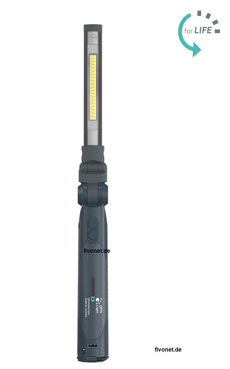 Angetrieben durch ein hocheffizientes Multi-LED-Design mit 20 LEDs bietet SLIM eine einstellbare Lichtausbeute bis zu 500 Lumen. Das Spotlicht oben bietet einen fokussierten Lichtstrahl von 150 Lumen. Die OPTILight-Einstellung liefert die erforderliche Beleuchtungsstärke (LUX) in einer typischen Arbeitssituation und sorgt mit einem einfachen Druck für optimales Licht und optimale Laufzeit. Diese Arbeitsleuchte bietet eine konstante Lumenleistung, gemessen nach der europäischen Norm EN 13032-1.
