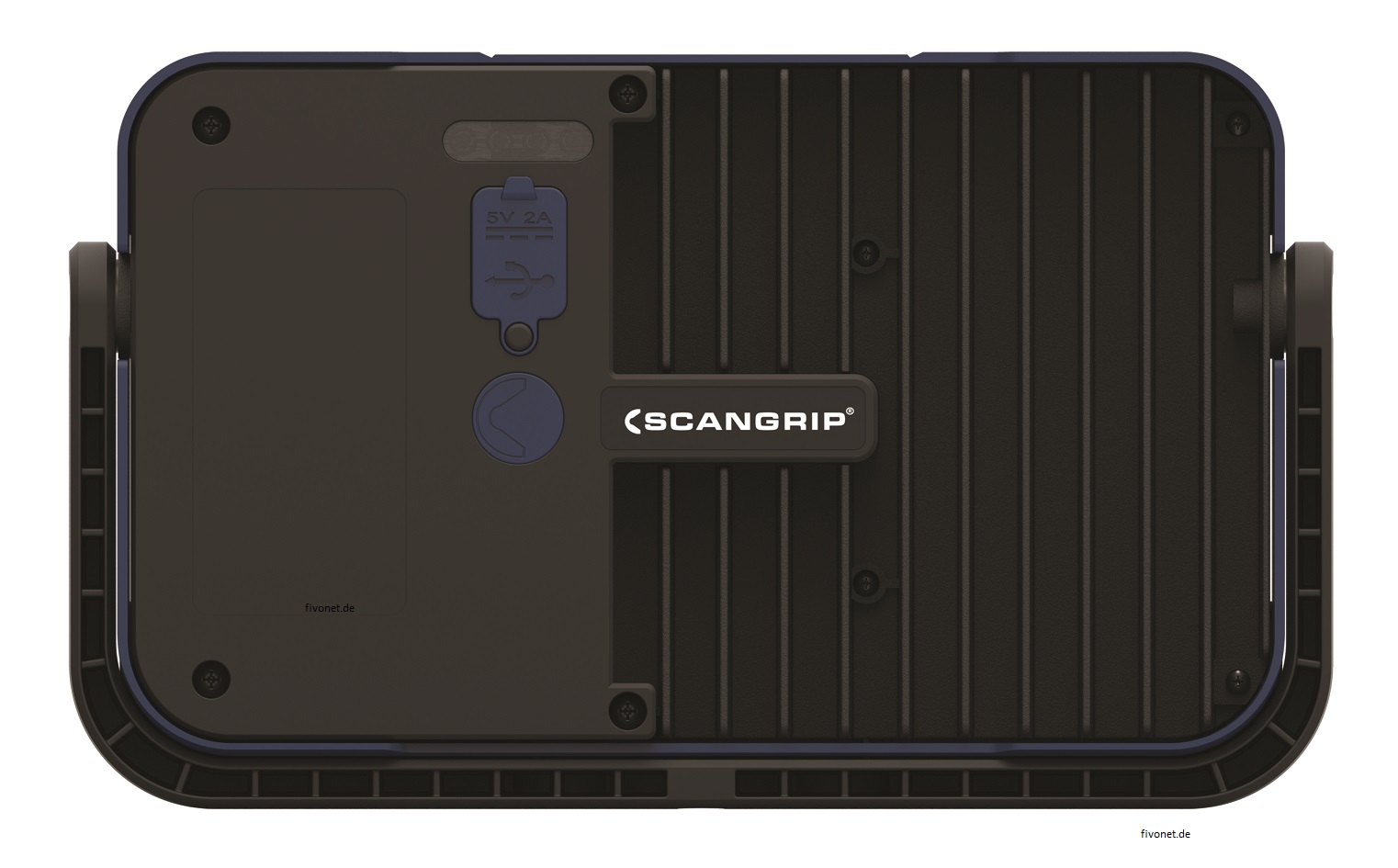 FLOOD LITE M ist ein leichter LED-Baustrahler mit 2.000 Lumen, der leicht und problemlos mitzunehmen und aufzubewahren ist. Das robuste und langlebige Gehäuse des Flutlichtstrahlers wurde aus besonders schlagfestem Kunststoff hergestellt und eignet sich perfekt für den rauen Alltagsbetrieb. Gegenüber dem vorigen Modell wurde der FLOOD LITE M mit der hocheffizienten LED-COB-Technologie für superhelle Ausleuchtung des Arbeitsplatzes versehen. Die Leuchte wurde auch mit einer stufenlosen Dimmfunktion von 10 % bis 100 % aufgewertet, so dass die Lichtleistung für die jeweilige Arbeitsaufgabe eingestellt werden kann. Im fivonet.de - Test konnte die Funktion wie folgt bedient werden. Durch einen dauerhaften Druck auf den Ein/Aus Schalter kann so die jeweils benötigte Ausleuchtung eigestellt werden. Auch mit einer praktischen Akkustand - Anzeige auf der Rückseite, ist diese Profi-Leuchte ausgestattet. Durch einen dauerhaften Druck auf den Ein/Aus Schalter im ausgeschaltetem Zustand, wird der Akkustand in 4 Stufen angezeigt. Es besteht die Möglichkeit die FLOOD LITE M auf oder an seperat erhältlichen Zubehörteilen von Scangrip wie z.Bsp. Stativen, Magnethalter oder Gerüsthalter zu befestigen. Die Lampe ist mit einer Powerbank mit USB - Eingang zum aufladen mobiler Geräte ausgerüstet. fivonet.de Text