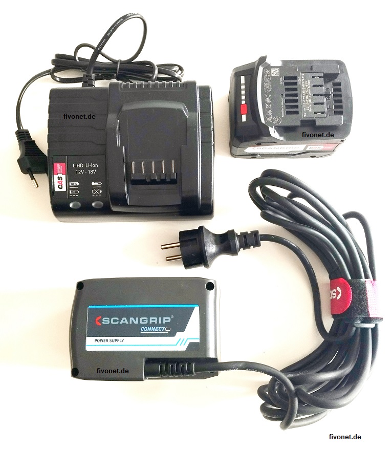 In diesem Angebot ist der 18V CAS Akku mit Ladegerät sowohl auch das Netzteil PowerSupply mit 5 Meter Kabel enthalten / KomplettSet.