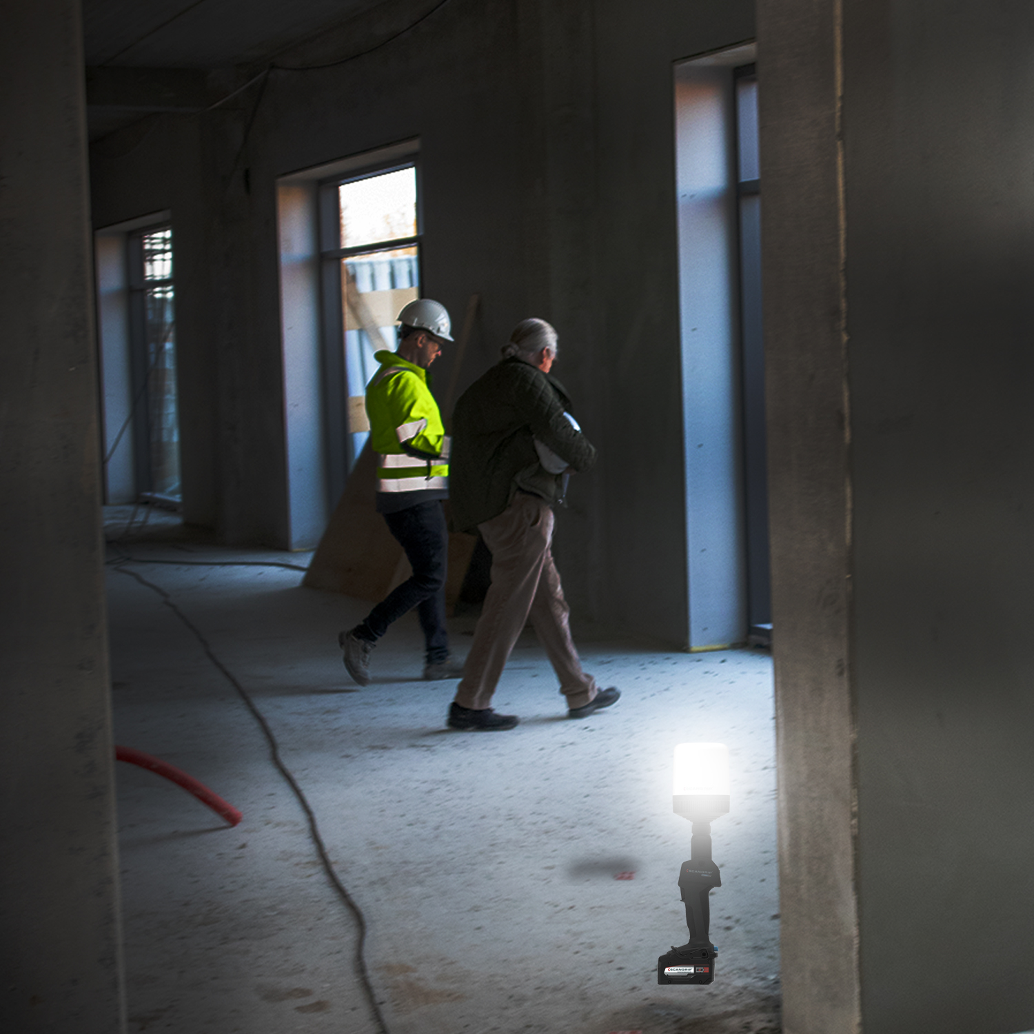 Das MULTILIGHT CONNECT-Konzept basiert auf der Idee, einen Basisgriff, wie er von Elektrowerkzeugen bekannt ist, mit einer Reihe unterschiedlicher Arbeitsleuchtenköpfe zu kombinieren, die je nach Einsatzgebiet eingesetzt und ausgetauscht werden können. Das Kit wird mit vier verschiedenen austauschbaren Leuchtenköpfen geliefert, sodass Sie ganz einfach den Leuchtenkopf austauschen und verwenden können, der für Ihre Arbeitsaufgabe am besten geeignet ist.
