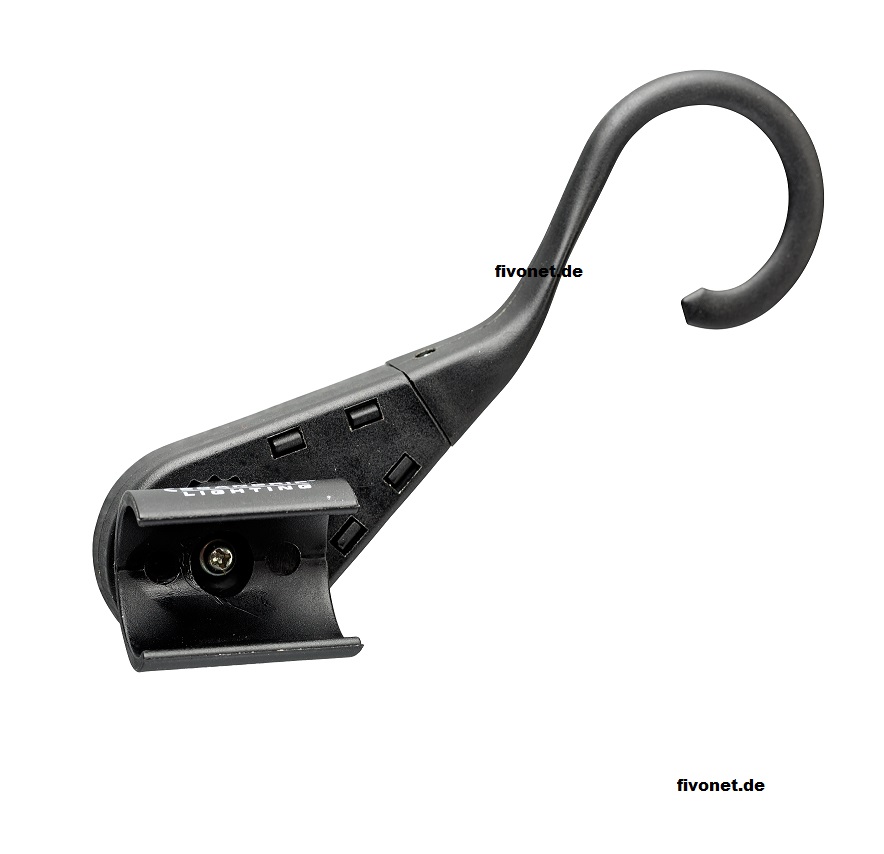 Einstellbarer Haken für flexible Positionierung, hauptsächlich für kleinere Beleuchtungseinheiten. Auch als Bereitschaftshalterung für jederzeitige Verfügbarkeit der Leuchte geeignet!